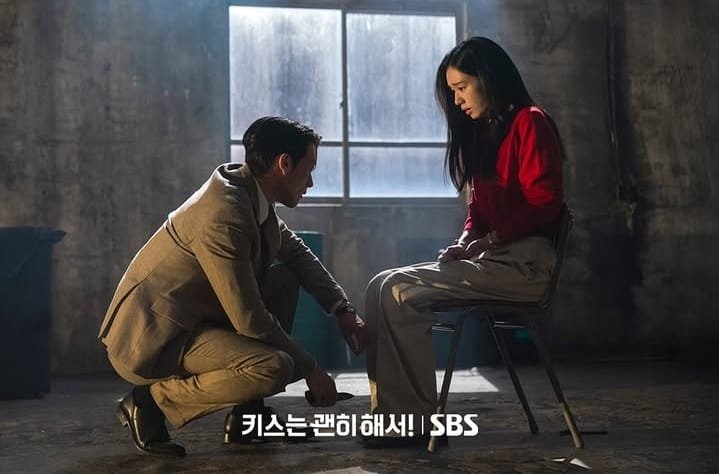 Gong Ji Hyeok terlihat berlutut untuk melepaskan tali yang mengikat Go Da Rim.
