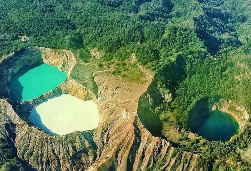 Gunung Kelimutu terkenal dengan 3 danau kawahnya yang dapat berubah menjadi 3 warna sekaligus.
