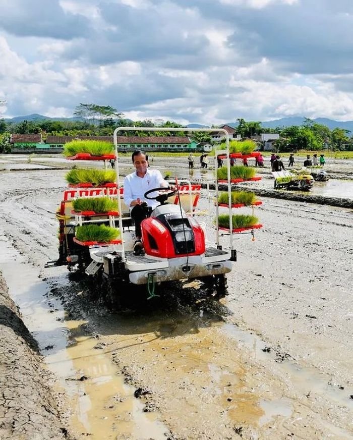BANTENRAYA.COM – Presiden Jokowi memposting aktivitas menanam padi menggunakan mesin modern.