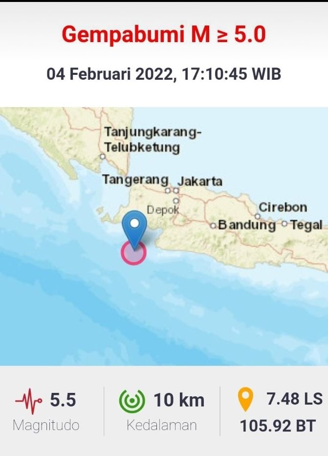 Baca Juga: Gempabumi Tektonik Magnitudo 5.5 di Wilayah Bayah-Banten, Tidak Berpotensi Tsunami