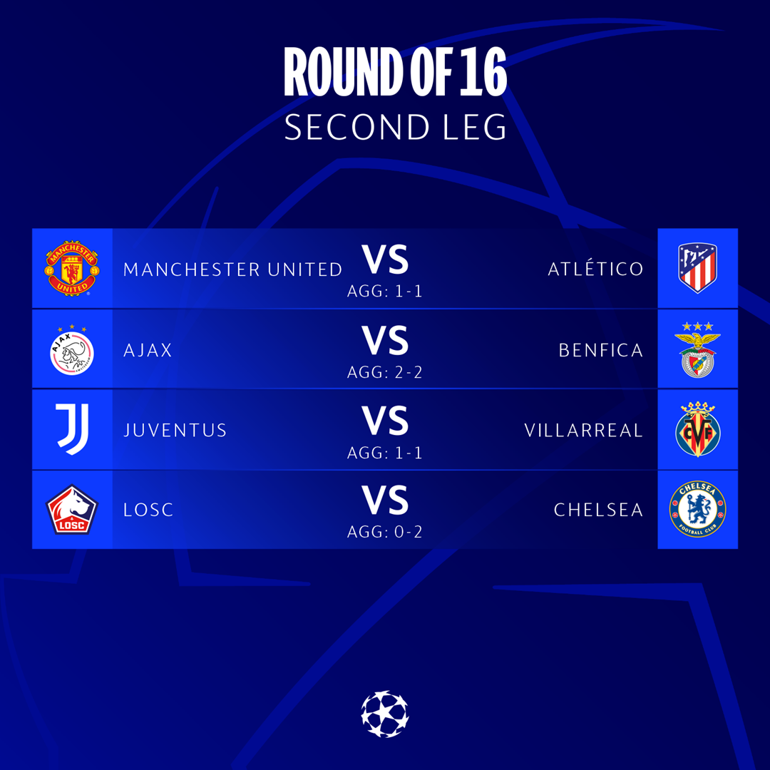 Berdasarkan jadwal leg kedua babak 16 besar Liga Champions pada tengah pekan ini sejumlah klub akan bertanding.