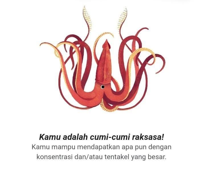 – Setelah kalian berhasil menjawab, Google akan menampilkan karakter hewan yang sesuai mewakili peserta yang diperoleh dari menjawab pertanyaan tadi.