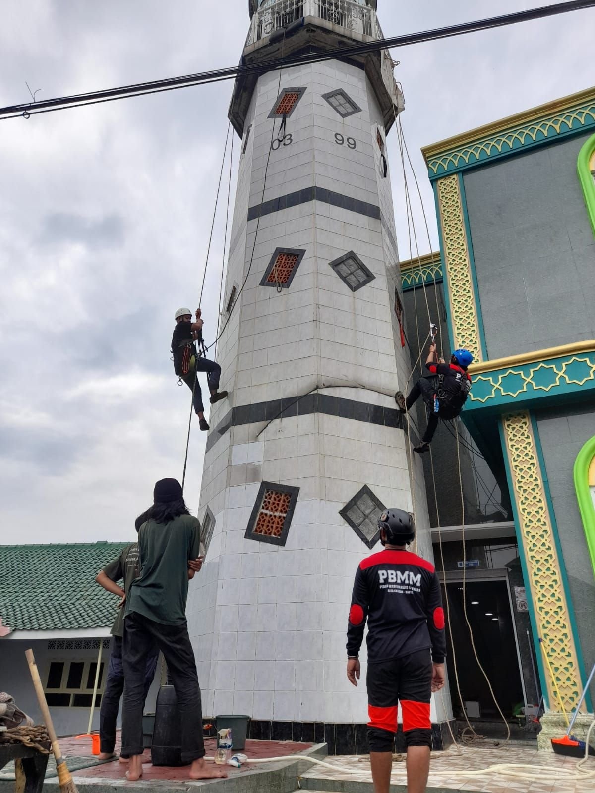PBBM dalam aksi bersih menara Masjid Assafina di Jalan DI Panjaitan, Linkungan Pagebangan, RW 03, Kelurahan Ketileng, Kecamatan Cilegon, Kota Cilegon itu dilakukan layaknya panjang tebing.