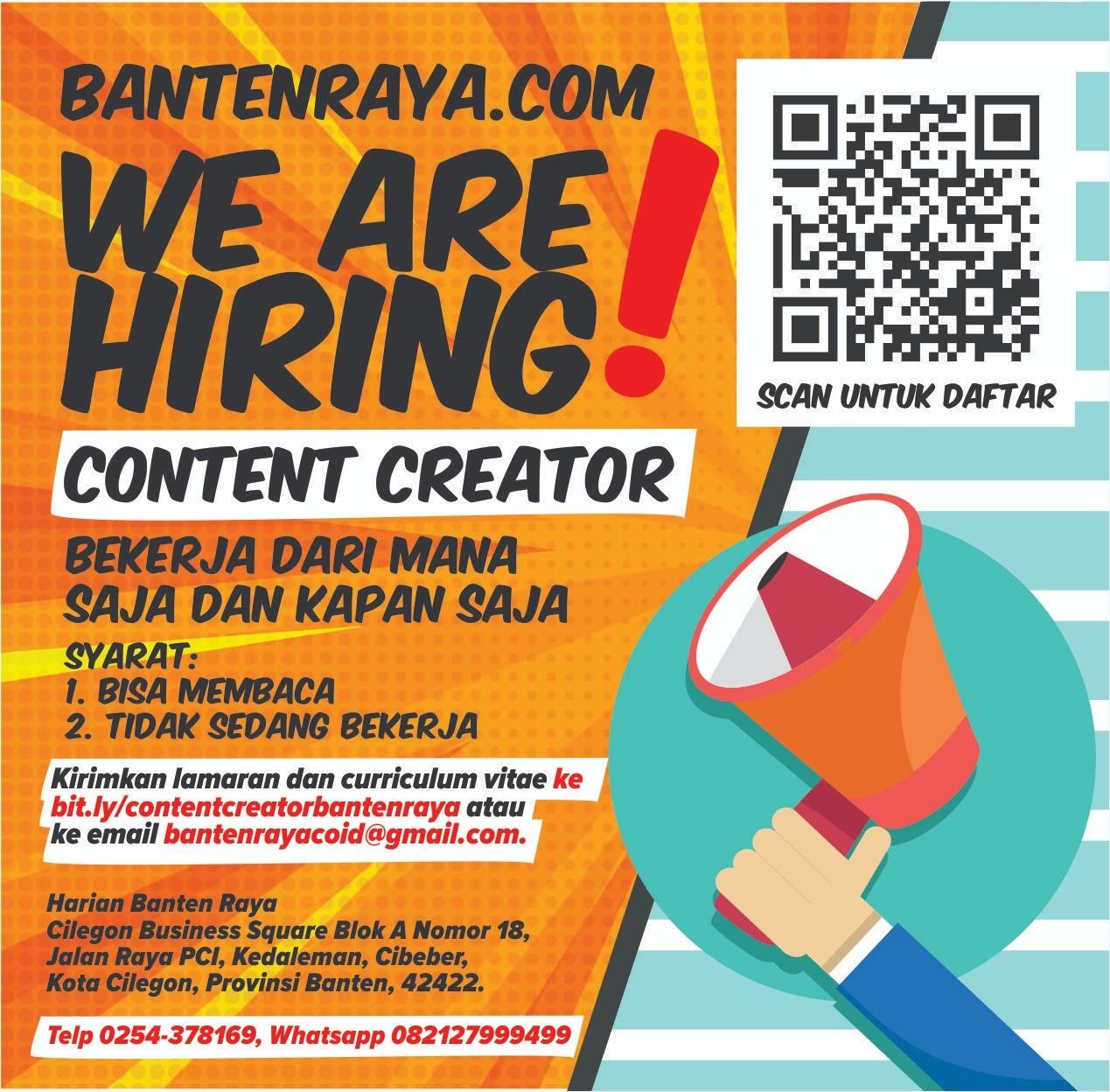 Bantenraya.com membuka lowongan kerja bagi kalian yang ingin menjadi content creator.