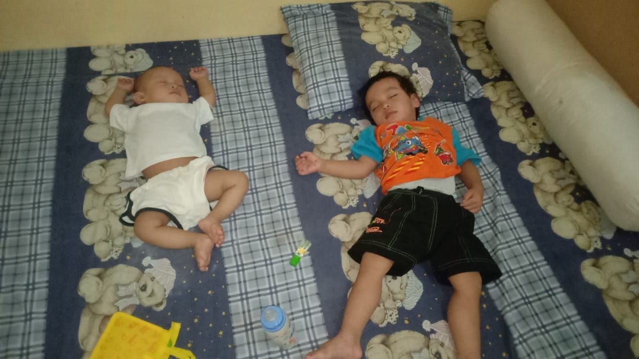 Dua balita berusia 9 bulan dan 3 tahun tersebut ditinggalkan hanya dengan sebuah tas dan satu botol susu.