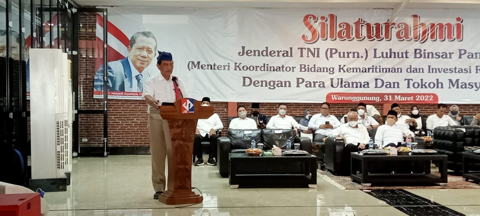 Menteri Luhut saat sambutan diacara kunjungan kerja di Lebak di Hanggar Jayabaya, Warunggung, Kamis 31 Maret 2022. Hudaya bantenraya.com