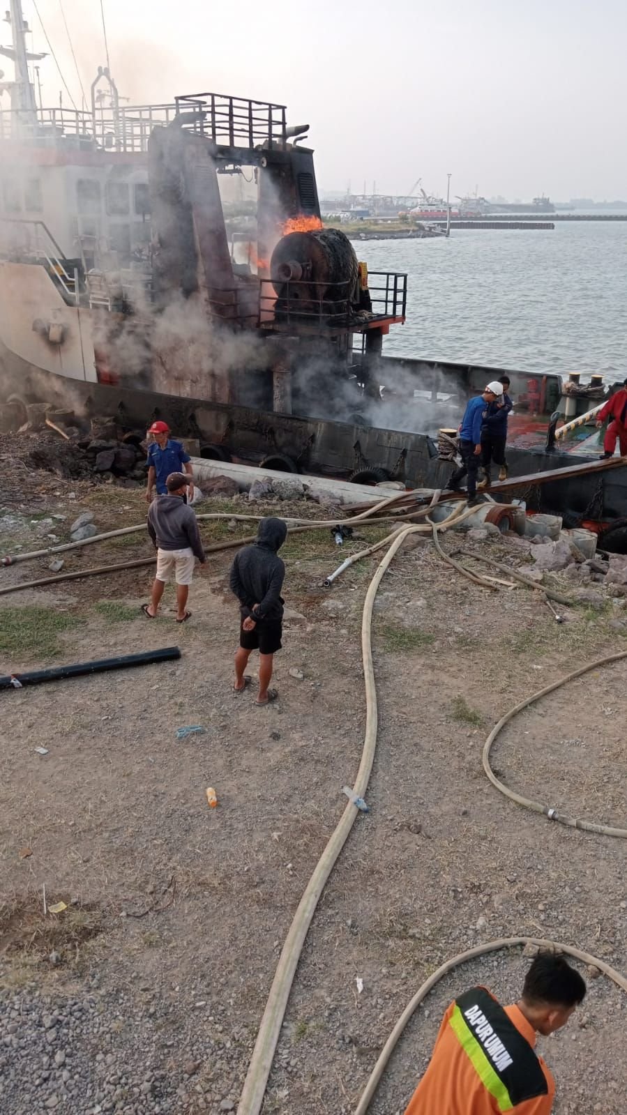 “Api baru berhasil dipadamkan pada pukul 21.08 WIB. Untuk penyebab kebakaran informasi dari petugas di lapangan katanya kapal sedang dilakukan perbaika. Jadi ada percikapan api dari aktivitas pengelasan yang mengenai solar,” katanya.