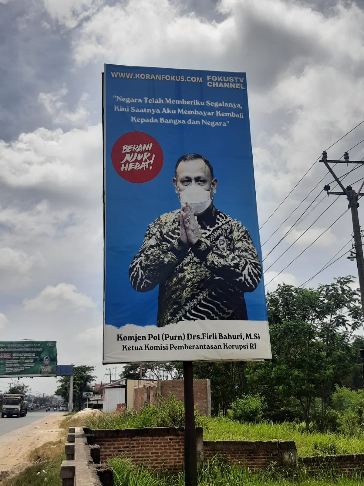 Ada foto Bapak di baliho gede di Lampung Selatan.. Udah tahu belum, Pak? Atau apa @KPK_RI ada program sosialisasi ak dg baliho. Oh ya, foto barusan dikirim teman yg sdg tugas di Lamsel. Lokasi: Jl. Raya Natar, Lampung Selatan,” cuit Febry Diansyah dalam akun twitternya.