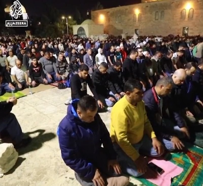 Dilansir dari twitter Al Jazeera English pada Jumat 29 April 2022,diperkirakan 250.000 jamaah berkumpul di Masjid Al-Aqsha pada Rabu malam untuk menandai salah satu malam paling suci dalam Islam, Lailatul Qadar.