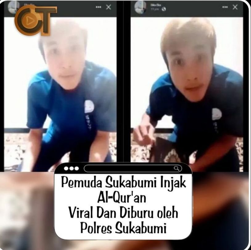 Dalam keterangan Polres Sukabumi Kota, video CER yang menginjak Alquran diunggah sang istri, SL melakui akun Facebook sang suami.