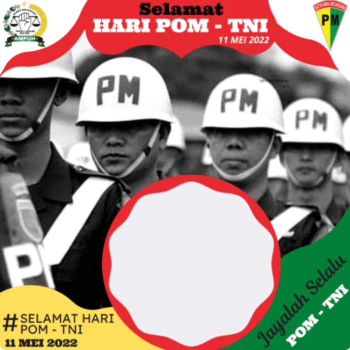 Melalui twibbon Hari POM TNI 2022 ini, Anda bisa membuat kartu ucapan yang berisi gambar bingkai, foto, dan tulisan secara digital.