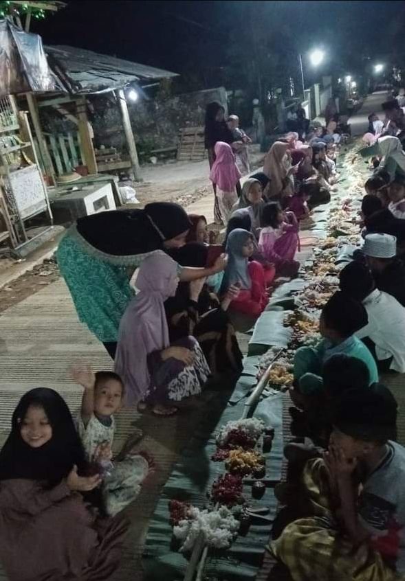 Uniknya acara tersebut di laksanakan di bangunan jalan beton, mulai dari anak-anak hingga para tokoh masyarakat terlihat antusias meramaikan acara do’a bersama, hal ini di laksanakan sebagai bentuk ungkapan rasa syukur, karena kondisi jalan yang sebelumnya rusak parah sudah selesai di bangun.