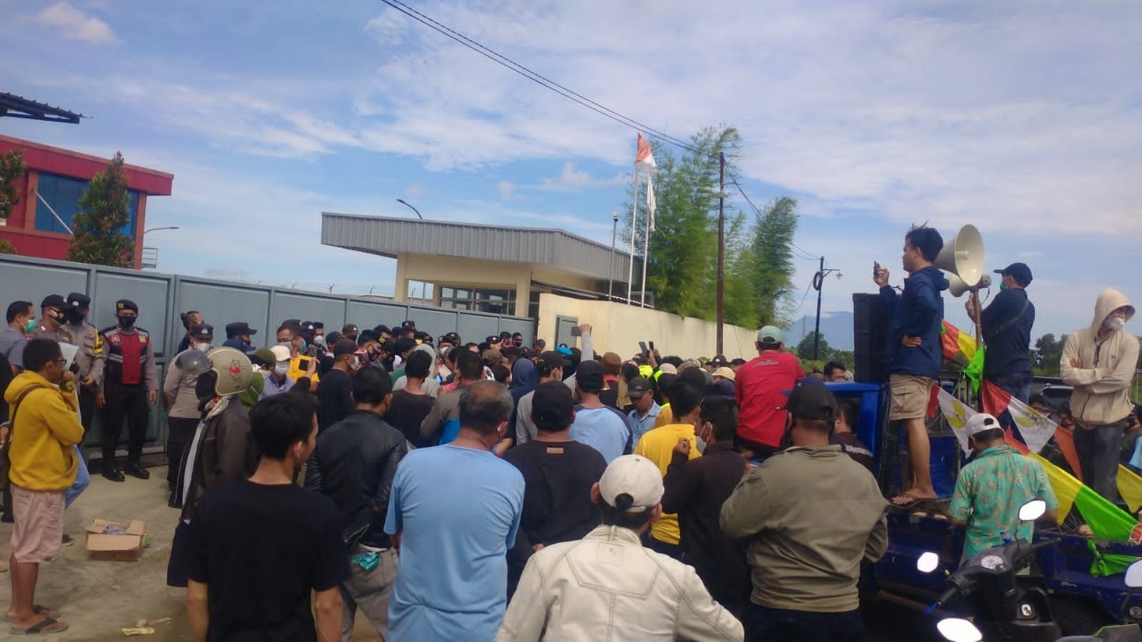 BANTENRAYA.COM – Ratusan warga Desa Junti, Kecamatan Jawilan melakukan aksi unjuk rasa di depan PT Pahala Sukses Bersama (PSB) yang ada di desa mereka. Aksi dipicu lantaran perusahaan yang memroduksi pakan ikan tersebut mengeluarkan bau bangkai ikan busuk.
