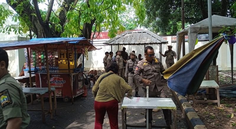 BANTENRA.COM – Jelang Pekan Olahraga Pelajar Daerah atau Popda X dan Pekan Paralimpik Pelajar Daerah atau Peparpeda VII Tingkat Provinsi Banten pedagang kaki lima atau PKL yang biasa berjualan di kawasan Stadion Maulana Yusuf, Ciceri, Kota Serang, ditertibkan petugas gabungan Satuan Polisi Pamong Praja atau Satpol PP Kota Serang, TNI dan Polri, Selasa 31 Mei 2022.