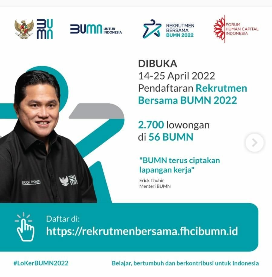Sebagaimana diketahui, pada 14 April 2022 yang lalu, BUMN resmi membuka lowongan pekerjaan bagi putra-putri Indonesia.