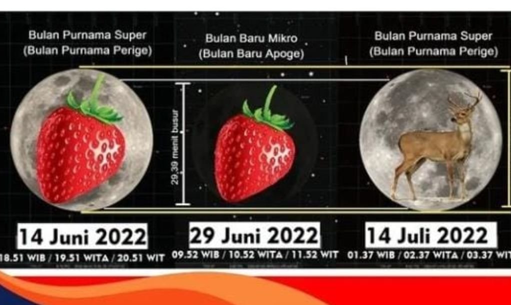 Menurut Peneliti Pusat Riset Antariksa, Badan Riset dan Inovasi Nasional (BRIN), Andi Pangerang ada tiga fenomena antariksa langka yang terjadi pada bulan Juni dan bulan Juli, yakni Purnama Stroberi Super (Full Strawberry Supermoon), Bulan Baru Stroberi Mikro (New Strawberry Supermoon), dan Purnama Rusa Super (Full Buck Supermoon).