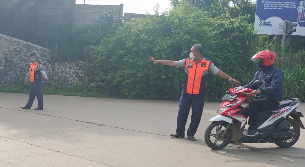 Setelah memberi komando kepada petugas dinas perhubungan lain yang lebih junior, dia langsung berjalan ke dekat terowongan mengatur kendaraan yang lalu lalang keluar masuk terowongan.