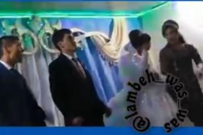 Tidak terima dikalahkan oleh mempelai wanita, pengantin pria emosi dan langsung memukul kepala pengantin wanita dengan cukup kencang.