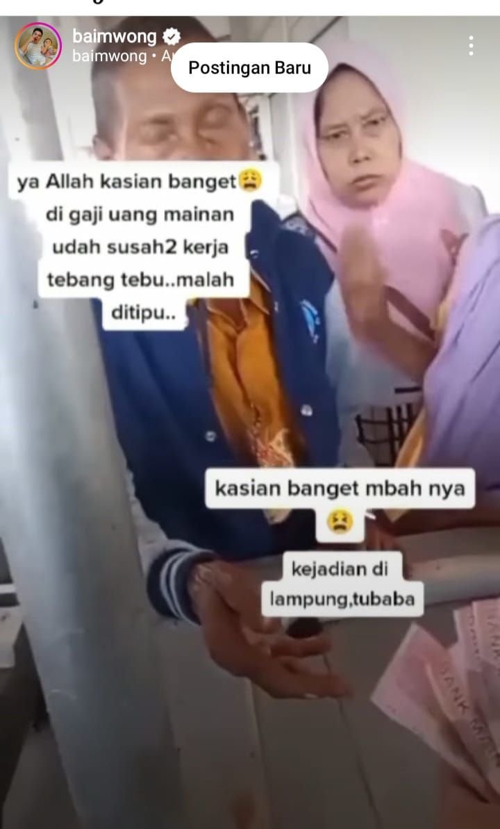 BANTENRAYA.COM – Aktor sekaligus YouTuber Baim Wong memposting video salah seorang kakek yang diduga telah digaji uang palsu oleh bosnya.
