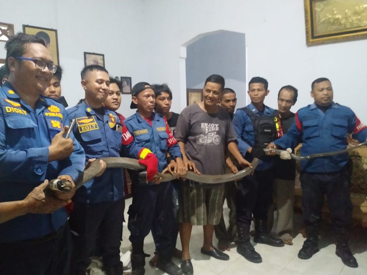 Penyebabnya, seekor ular King Cobra sepanjang 3,5 meter berat 10 kilogram masuk rumah Isti Sugianto warga Lingkungan Ciemas Raya.