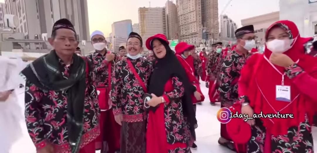 Dalam video tersebut terlihat rombongan jamaah haji asal Kota Cilegon mengenakan pakaian yang tak biasanya.