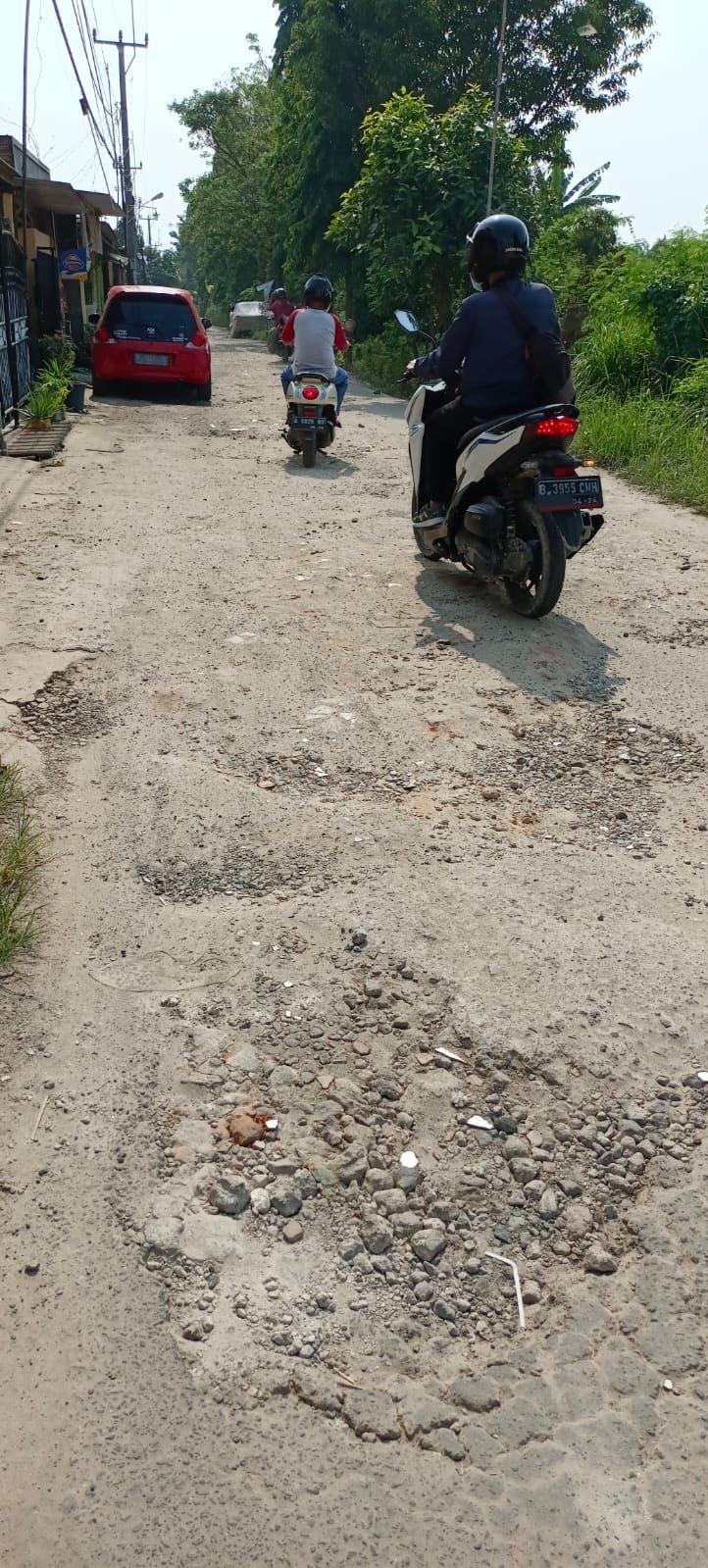 Akibatnya jalan ini rusak dari ujung gerbang di sebelah selatan Taman Mutiara Indah sampai di ujung lagi di sebelah barat perumahan tersebut.