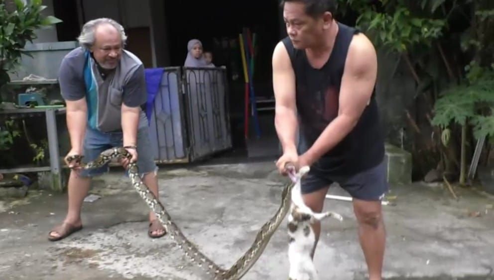 “Kucing tiba-tiba mengeong terlalu kencang dan kedengeran aneh..Tiba-tiba anak yang punya kucing teriak ada ular,” kata Fauzi.
