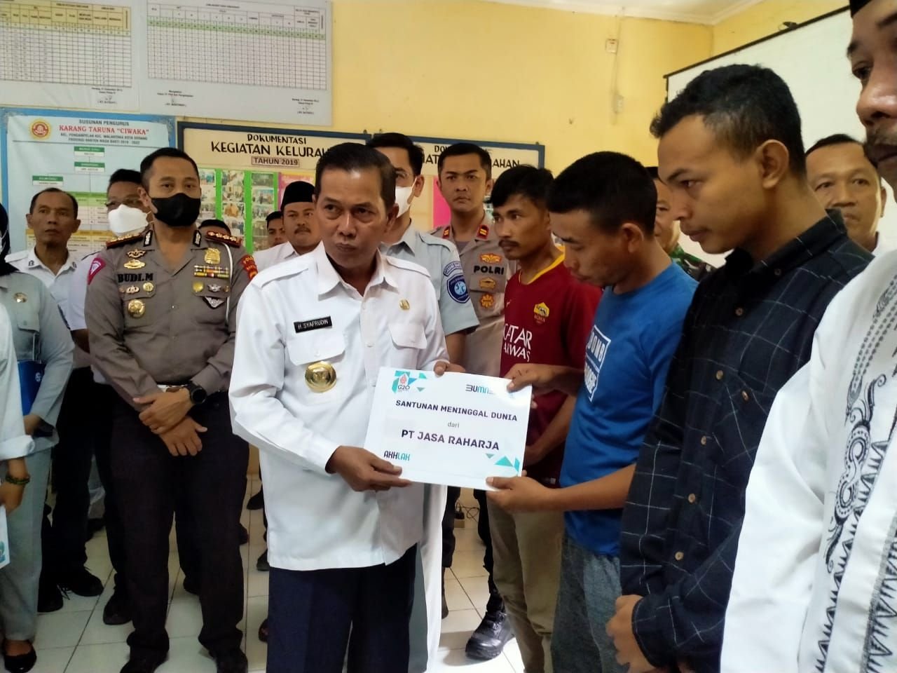 Penyerahan simbolisasi santunan kematian ini disaksikan Dirlantas Polda Banten Kombes Pol Budi M, Kepala Cabang Jasa Raharja Banten Saldhy Putranto, dan Muspika Kecamatan Walantaka. ***