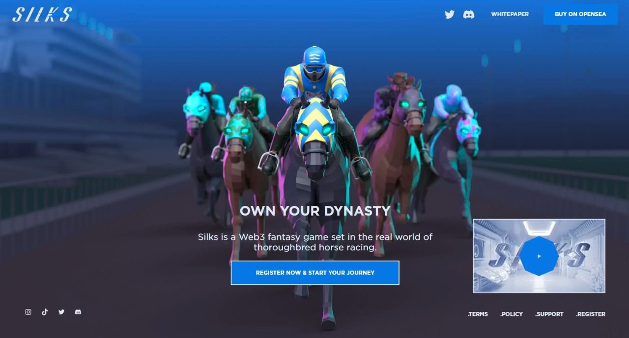 Silks adalah metaverse play to earn berbasis turunan pertama di dunia yang mencerminkan dunia nyata pacuan kuda ras murni.