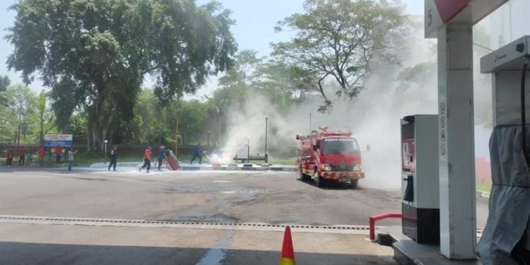 Semburan api menyebabkan salah seorang karyawan SPBPU mengalami luka bakar namun tidak terlalu parah.