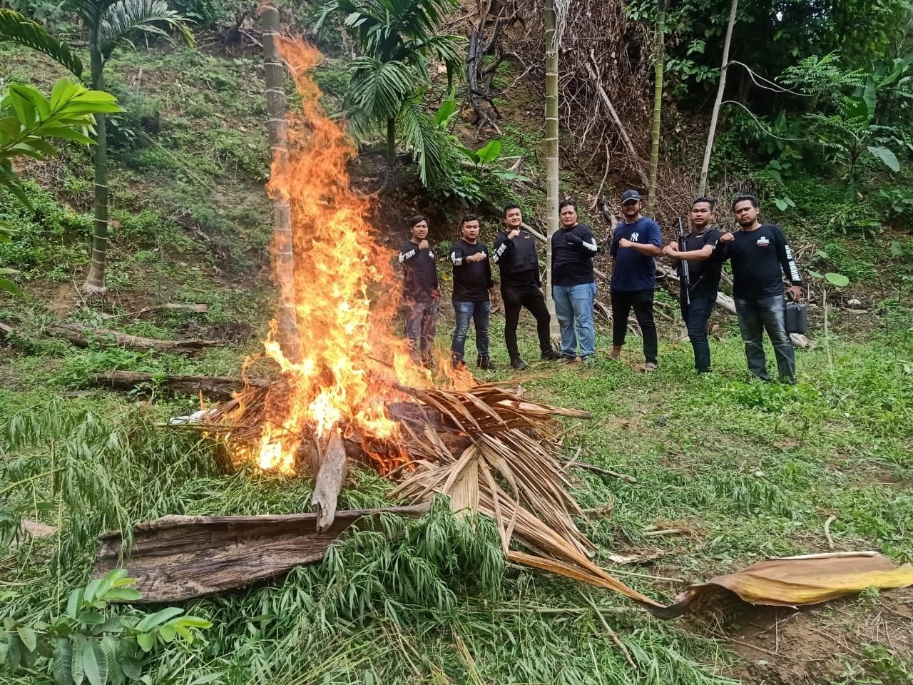 “Untuk lokasi ladang ganja dibagi menjadi 3 area. Area 1 ditemukan pohon ganja setinggi 100 sampai 200 centimeter usia 4 bulan seluas 0.5 hektar. Area 2 ditemukan pohon ganja setinggi 50-100 centimeter usia 2 bulan seluas 0.5 hektar, dan di area 3 ditemukan pohon ganja setinggi 150 hingga 250 centimeter usia 3-4 bulan seluas 2 hektar,” tegasnya.