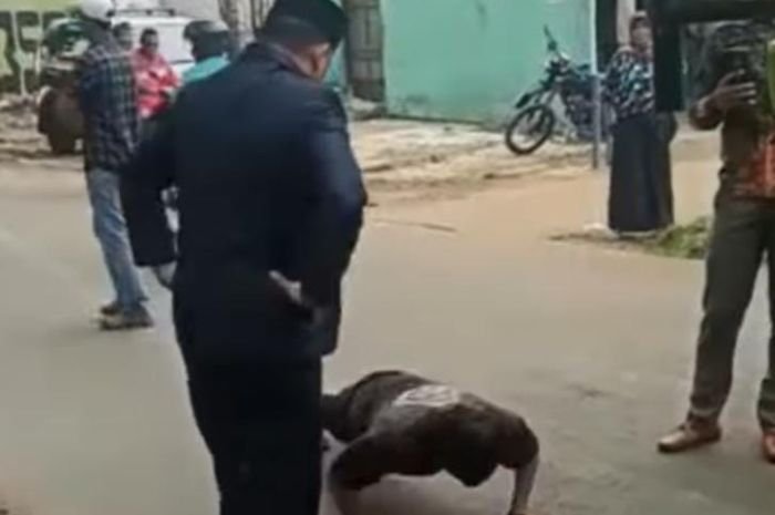 Setelahnya, Ia pun diperintahkan untuk berguling-guling di tengah jalan.