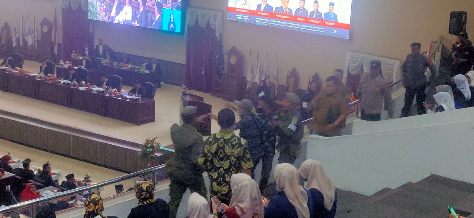 Terobos Pengamanan, Mahasiswa Teriak di Paripurna HUT Banten: Selamat Ulang Tahun Banten yang Gini-gini Saja