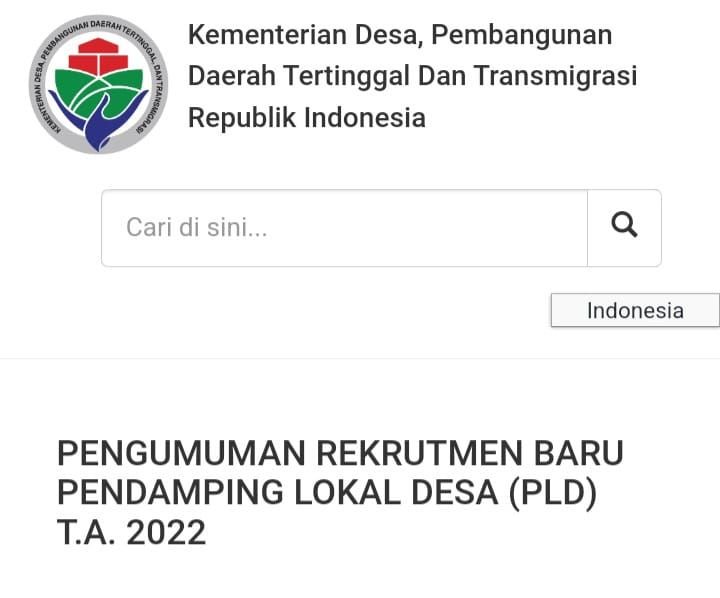 Pengumuman hasil seleksi administrasi PLD 2022 Kemendesa bisa diakses melalui laman resmi di rekrutmenpld2022.kemendesa.go.id.