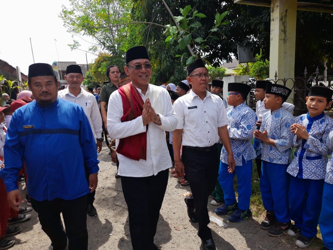 Dalam kehadirannya, Walikota Cilegon Helldy Agustian juga sama disambutan lantunan Salawat Nariyah oleh ratusan siswa MI Al Jaharotunnaqiyyah.