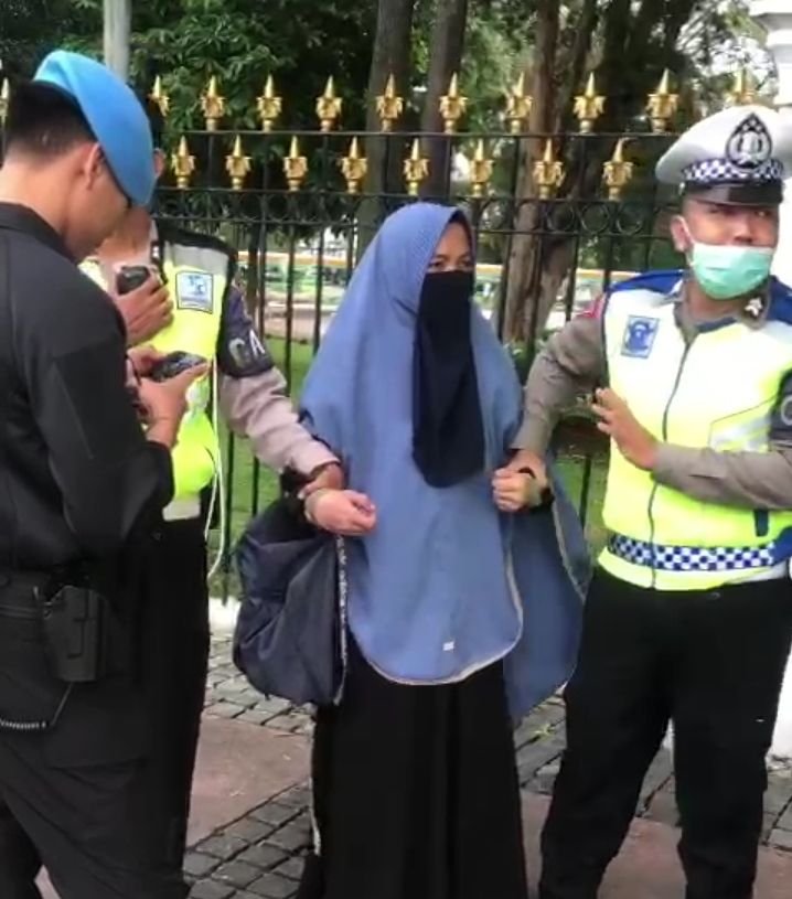 Menurutnya sebelum melancarkan aksinya perempuan yang mengenakan pakaian muslim itu, terlebih dulu berjalan kaki dari arah Harmoni menuju Medan Merdeka sekitar pukul 07.00 WIB.