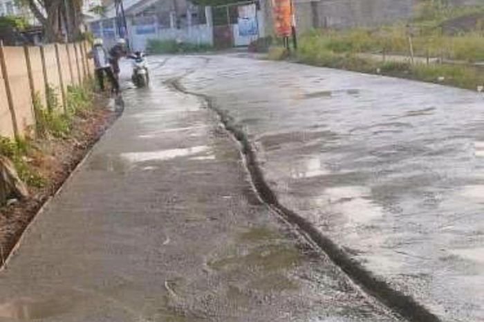 BANTENRAYA.COM – Viral sebuah gambar seorang premotor menerobos jalan beton yang belum kering di Cilegon.