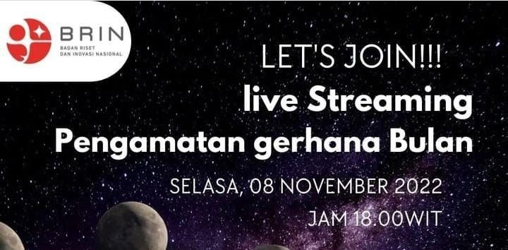 Sebagain informasi, live streaming untuk menyaksikan Gerhana Bulan Total ini akan dilakukan, pada Selasa, 8 November 2022, pukul 18.00 WIT.***