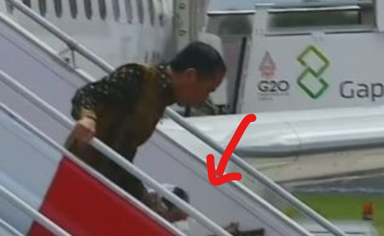 Ibu Iriana Jokowi Dodo terpeleset di tangga pesawat Kepresidenan jelang mengikuti Konferensi Tingkat Tinggi Group of Twenty (KTT G20) di Bali.
