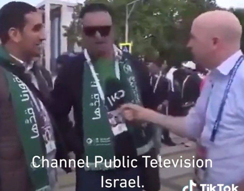 Terdapat video viral di TikTok, suporter Saudi Arabia enggan diwawancarai oleh reporter Israel.