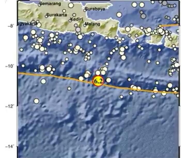 Secara rinci, gempa Jember terjadi di titik koordinat 10.75 lintang selatan (LS)-113.42 bujur timur (BT).