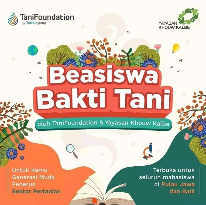 BANTENRAYA.COM – Tani Foundation bersama Yayasan Khouw Kalbe membuka kesempatan beasiswa bagi mahasiswa di wilayah Pulau Jawa dan Bali, dengan insentif Rp6 juta per 6 bulan atau per semester.