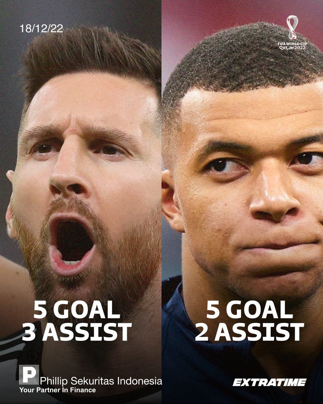 Sepanjang laga Piala Dunia Qatar, dua pemain Paris Saint-Germain (PSG) ini memang draw dalam mencetak gol yakni masing-masing lima gol.