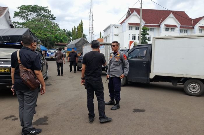 Kesibukan terjadi di halaman Kantor Bupati Cianjur hilir mudik kendaraan logistik pasca gempa. Uri/Bantenraya.com