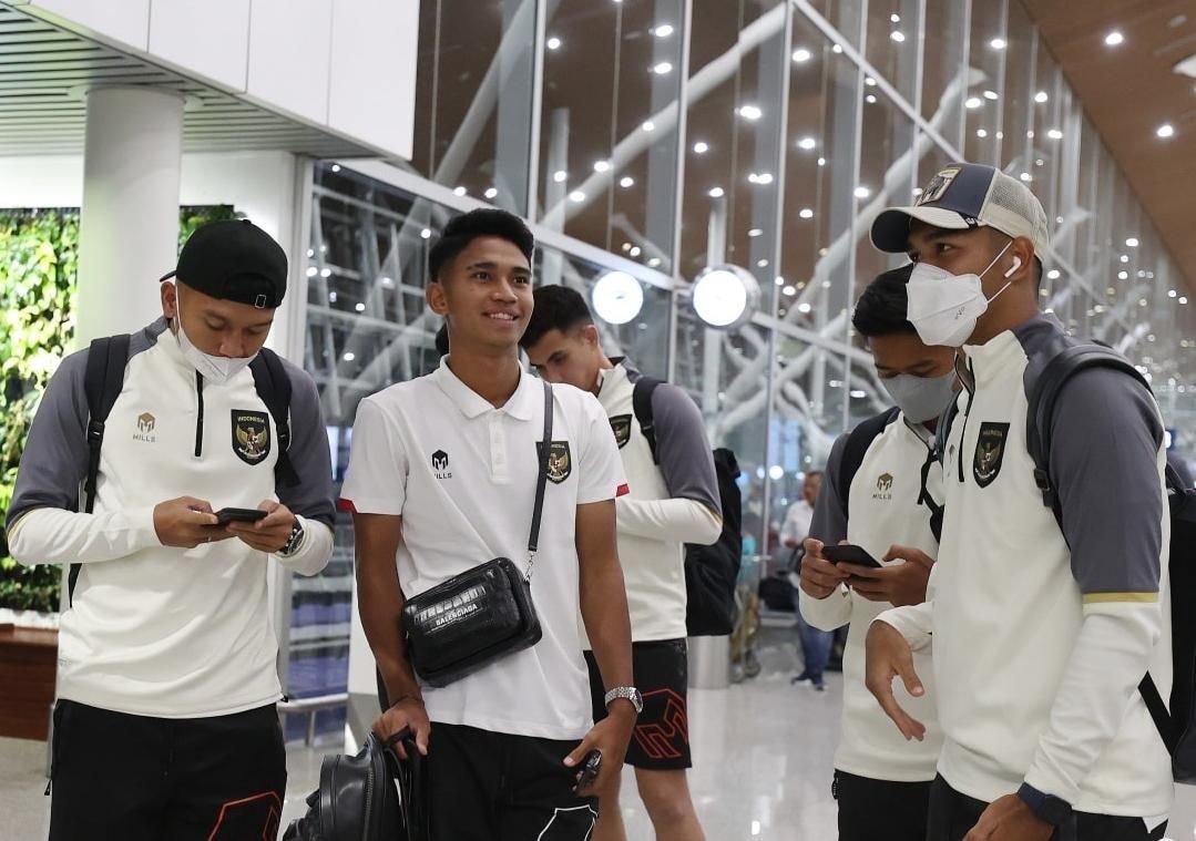 Punggawa Timnas Indonesia saat tiba di Kuala Lumpur, Malaysia untuk persiapan melawan Brunei dalam lanjutan Piala AFF 2022. Instagram @pssi