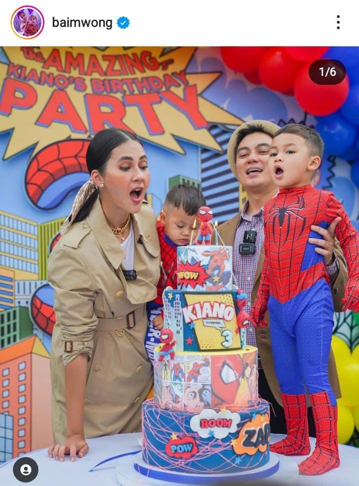 Dalam perayaan ulang tahun, Kiano dan adiknya Kenzo Edrago Wong mengenakan kostum Spider-Man.