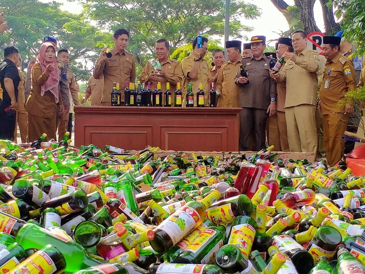 Pemusnahan ribuan miras dilakukan di halaman Puspemkot Serang, Kota Serang, Senin 16 Januari 2023.