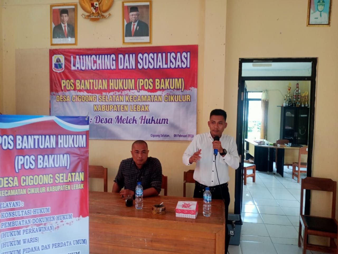 BANTENRAYA.COM – Desa Cigoong Selatan, Kecamatan Cikulur, Kabupaten Lebak merupakan desa pertama di seluruh Indonesia yang membentuk Pos Bantuan Hukum (Posbakum), Kamis 9 Februari 2023.