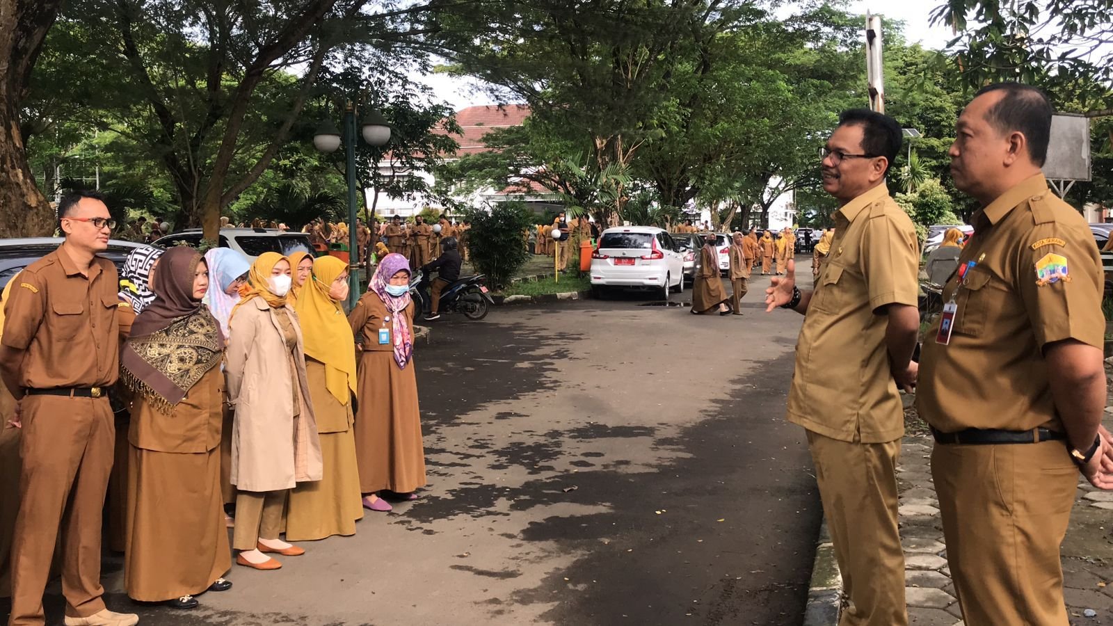 “Saya paham mungkin bagi bapak dan ibu yang terlambat karena banyak hal, seperti macet di jalan, mengurus anak, beres-beres rumah, masak dan lainnya. Namun tetap saya menyambut baik bapak dan ibu yang terlambat karena masih ada keinginan kesungguhan untuk mengikuti apel pagi,” ujar Nanang Saefudin, usai ikuti apel pagi kepada puluhan PNS yang telat hadir.