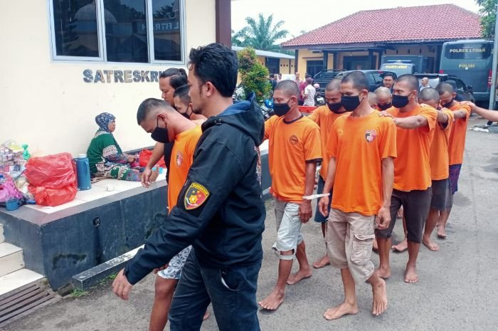 10 pelaku curanmor digiring anggota Polres Lebak di Mapolres Lebak, Kamis 16 Februari 2023. Sahrul/Bantenraya.com
